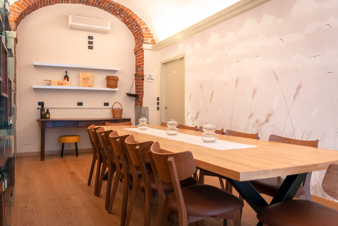 C’è anche una sala speciale, quella della Tavola Rotonda: un grande tavolo in legno che invita alla conversazione, senza capotavola né distanze, solo un cerchio perfetto di piatti e racconti che si intrecciano. E concludiamo con uno spazio che per ora non ha un nome preciso: lo immaginiamo come una pagina ancora da scrivere, pronta ad accogliere nuove idee e nuove storie insieme a chi lo vivrà.